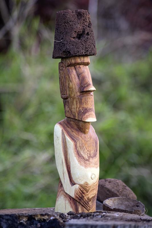 Entre los materiales utilizados, destacan los tallados son la escoria roja, hani-hani en lengua rapa nui, madera y basalto. El tema de cada creación cuenta una historia que realza nuestro patrimonio histórico, como la vida en el mar, los dioses, personajes de la tradición oral, los ancestros o Tupuna.